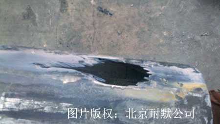 圖(1)北京耐默公司在現場看到的管道磨損腐蝕穿透