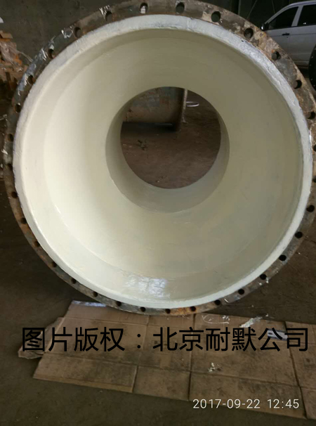 圖(1)脫硫泵出口大小頭管件原內(nèi)襯橡膠,采用KN17耐磨材料內(nèi)襯后耐磨性提高