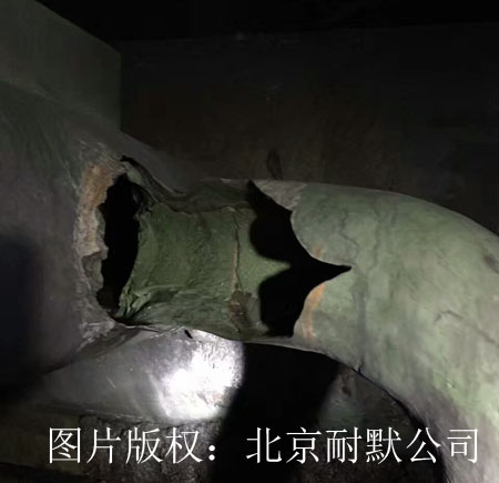 圖(1)噴淋管道磨損后可采用碳化硅耐磨防腐修補劑修復