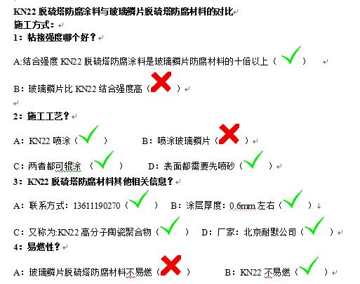 圖(2)玻璃鱗片脫硫塔防腐材料與KN22脫硫塔防腐材料的比較