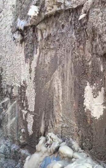 圖(2)采用KN17脫硫塔不停機帶壓帶水堵漏修補材料修復后不漏了
