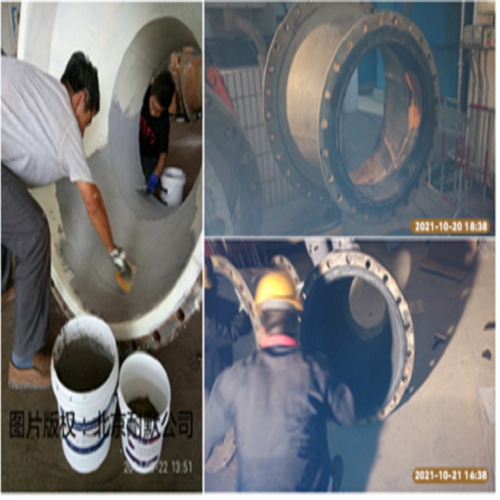 4、抹膠(第一層用力涂抹和金屬結(jié)合,厚度1毫米即可,第二次可增加厚度2-3毫米,逐漸增加到需要厚度)