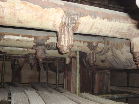 圖(1)脫硫塔內壁由于長時間的磨損腐蝕,需要采用KN17防腐耐磨膠修復